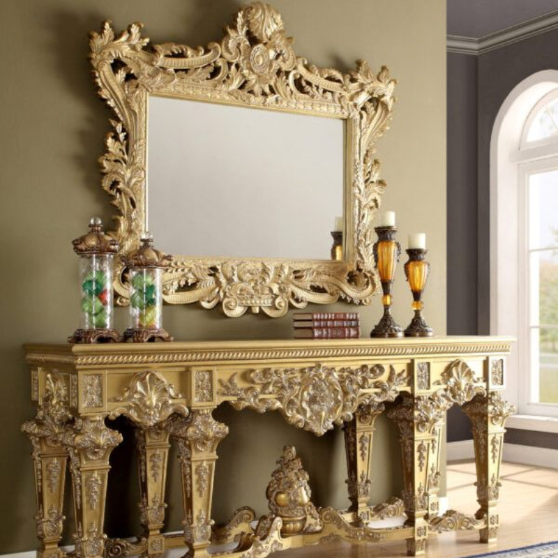 Dimensions: 80*24*36 Finish: Metallic Bright Gold Upholstered Material: N/A Frame Material: Wood/Composite Cubic Feet: 48.9 CBM: 1.39 Cartons: 1