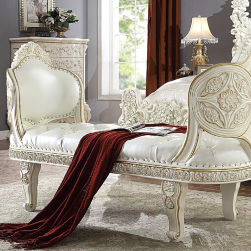 Dimensions: 76*26*45 Finish: White Gloss Upholstered Material: Leather Frame Material: Wood/Composite Cubic Feet: 44 CBM: 1.25 Cartons: 1